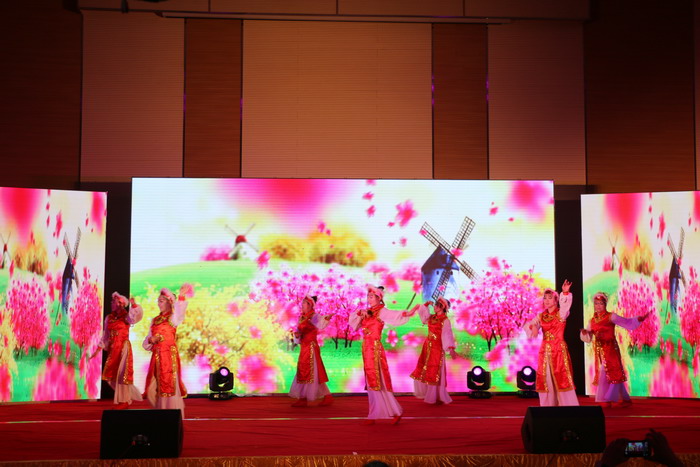 晚会本着节俭、隆重、喜庆的原则,整台节目全部由公司员工文艺骨干自创、自编、自排、自导、自演,通过歌曲、舞蹈、小品、相声、戏曲、诗歌朗诵、器乐组合等形式,突出了青春、团圆、欢乐、祥和的主题。