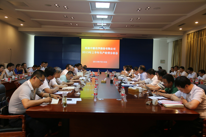 7月12日,威廉希尔500欧洲指数在四楼会议室召开2015年上半年生产经营分析会。远兴公司总经理梁润彪、党委书记吴爱国、副总经理董龙、刘义、赵国智及相关部门负责人,威廉希尔500欧洲指数总经理孙朝晖、副总经理张建春、徐骞、马千里、总工程师李山岭、行政总监李东辉、销售总监林强及各成员企业总经理、相关部门负责人参加了会议。会议由副总经理张建春主持。