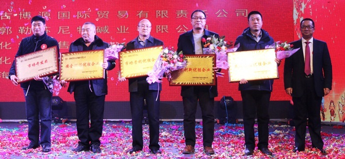 羊辞旧岁山佩云,猴接新年日流金。1月26日晚,威廉希尔500欧洲指数2016年会在公司综合训练馆隆重举行。威廉希尔500欧洲指数机关、制造中心、海晶公司、苏尼特公司、销售中心、博源国贸、博源化学、兴安盟博源化学、弘昱水资源公司的优秀新员工、先进工作者、优秀团队、先进集体代表,以及安棚区域员工代表200余人,与公司全体高管欢聚一堂,回顾历史,展望未来。