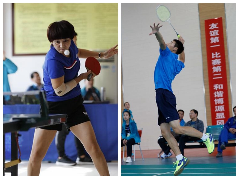 在海晶公司同步进行的乒乓球比赛也可谓高潮迭起、精彩不断。来自苏尼特公司的马秀萍拼尽洪荒之力,在女子循环赛中一举夺冠,她灵敏的反应速度和精彩扣球、回杀,都给现场观众留下了深刻的印象;男子组分A、B两组进行小组循环赛,小组赛的前两名选手再进行淘汰赛。选手们水平旗鼓相当,在最后的淘汰赛对决中,他们尽情享受着“棋逢对手”的快感,抽球、拉球、搓球……追平、赶超、再将比分拉开……现场气氛紧张而激烈。