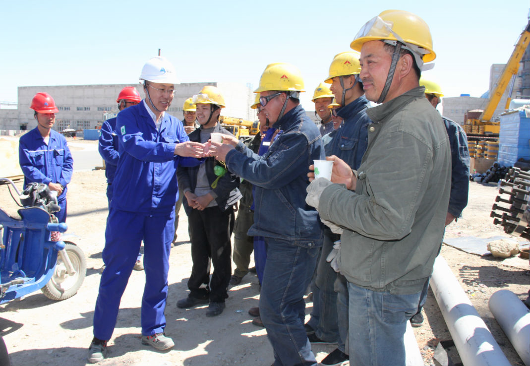 根据项目总体进度安排,30/52化肥项目今年将全面建成。面对紧张的工期、艰巨的施工任务,公司现场各设计、施工单位加派人手,加班加点保证工程进度。随着气温的升高,高温酷暑给项目施工带来新的挑战。5月31日,兴安化学工会主席许自新带着工会和后勤工作人员,把温热的绿豆汤送到现场的工人师傅手中。许自新说,30/52化肥项目进入到了建设的关键时期,项目的每一步都离不开你们的汗水和努力,代表公司向大家表示感谢,希望大家鼓足干劲,为项目早日投产试车继续努力。现场的工作人员纷纷表示将会一如既往保持干劲,完成好建设任务。