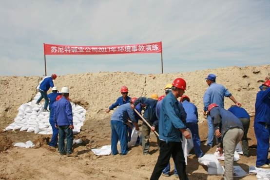 7月12日上午,苏尼特碱业公司组织了2017年度突发环境事件应急演练,演练以模拟湖区东围堤发生“溃坝事件”进行了现场实战化救援和处置。