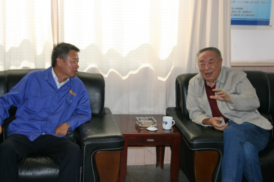 李武先生和苏尼特公司高管人员亲切座谈。苏尼特公司总经理吕永明向李武先生详细介绍了公司的生产经营情况、工艺创新、未来发展规划。李武先生回顾了当年苏尼特公司二轮技改时的情形,特别是圆斜化碱的设计、施工、达产情况,他鼓励苏尼特公司要大胆尝试,勇于创新。