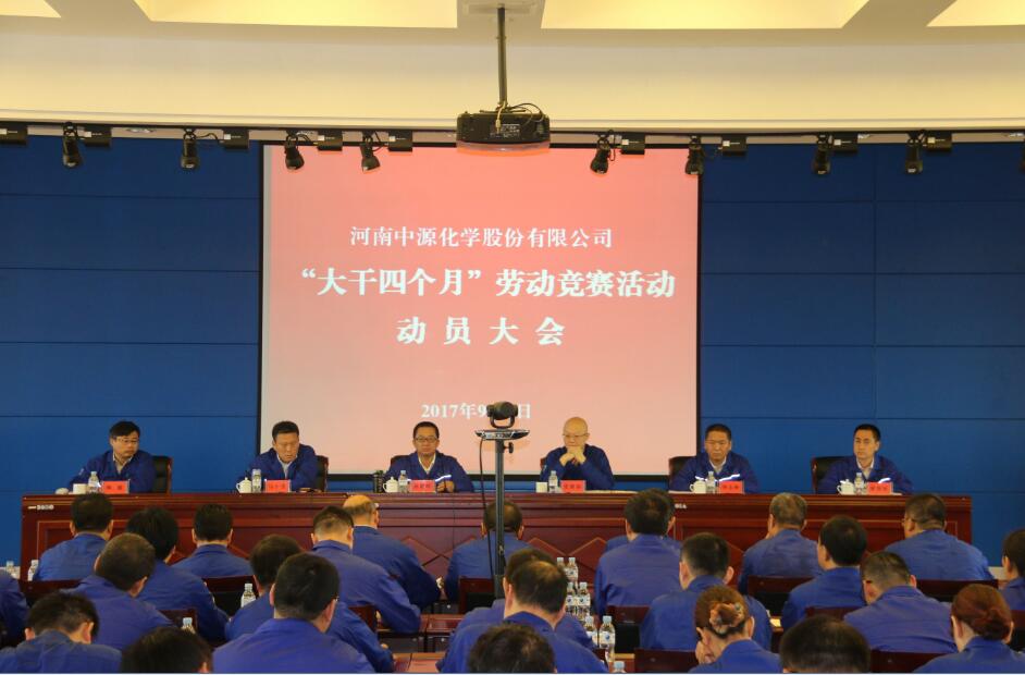 9月7日上午9点,威廉希尔500欧洲指数在四楼会议大厅召开“大干四个月”劳动竞赛动员大会,威廉希尔500欧洲指数公司各级管理人员150多人参加会议,海晶公司、苏尼特公司、博源国贸公司以视频会议的方式参会。威廉希尔500欧洲指数党委副书记、副总经理马千里主持大会。