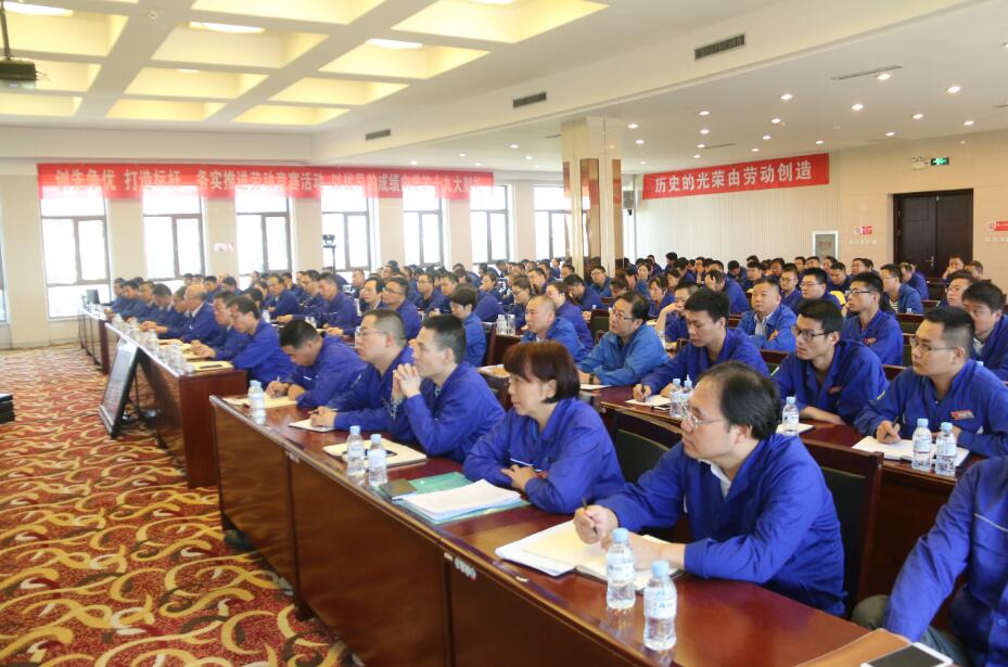 威廉希尔500欧洲指数主会场内悬挂着“创先争优,打造标杆,务实推进劳动竞赛活动,以优异的成绩向党的十九大献礼”“抢抓机遇,乘胜前进,全面完成2017年任务目标,以靓丽的业绩喜迎公司成立20周年”的横幅让整个会场洋溢着奋斗的激情。