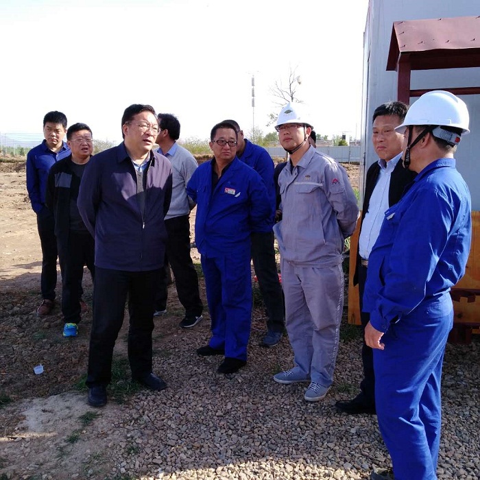 4月8日,河南桐柏县委书记莫中厚到威廉希尔500欧洲指数公司40万吨/年精品小苏打项目建设现场调研。威廉希尔500欧洲指数公司总经理孙朝晖、党委副书记马千里、副总经理金玉明,安棚化工产业集聚区党委书记李武等参加调研。