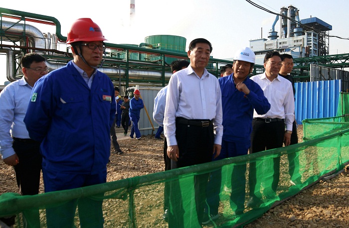 4月17日,阳光明媚,春风习习。南阳市委书记张文深到威廉希尔500欧洲指数公司40万吨/年精品小苏打项目建设现场调研。