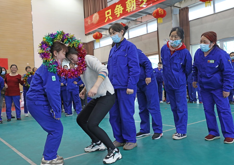 本次趣味活动有双龙戏珠、夹纸顶杯接力赛、蒙眼取水、花环传递和纸球大作战五个游戏。活动人员分为6组,以团队形式参赛,每个游戏比赛结束各队获相应分数,最后按分数从高到低进行排名。游戏中,各组队员密切协作、默契配合,到处洋溢着女工们欢快的笑声。